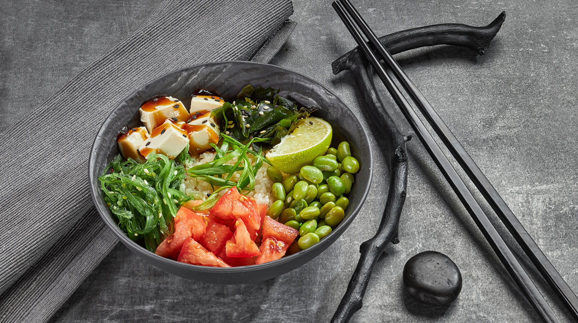 Состав: Тофу, помидор, бобы эдамаме, водоросли чука, водоросли вакамэ, лук зеленый, соус Терияки, соус Гамадари, лайм, кунжут, рис *Внешний вид блюда может отличаться от фото на сайте.