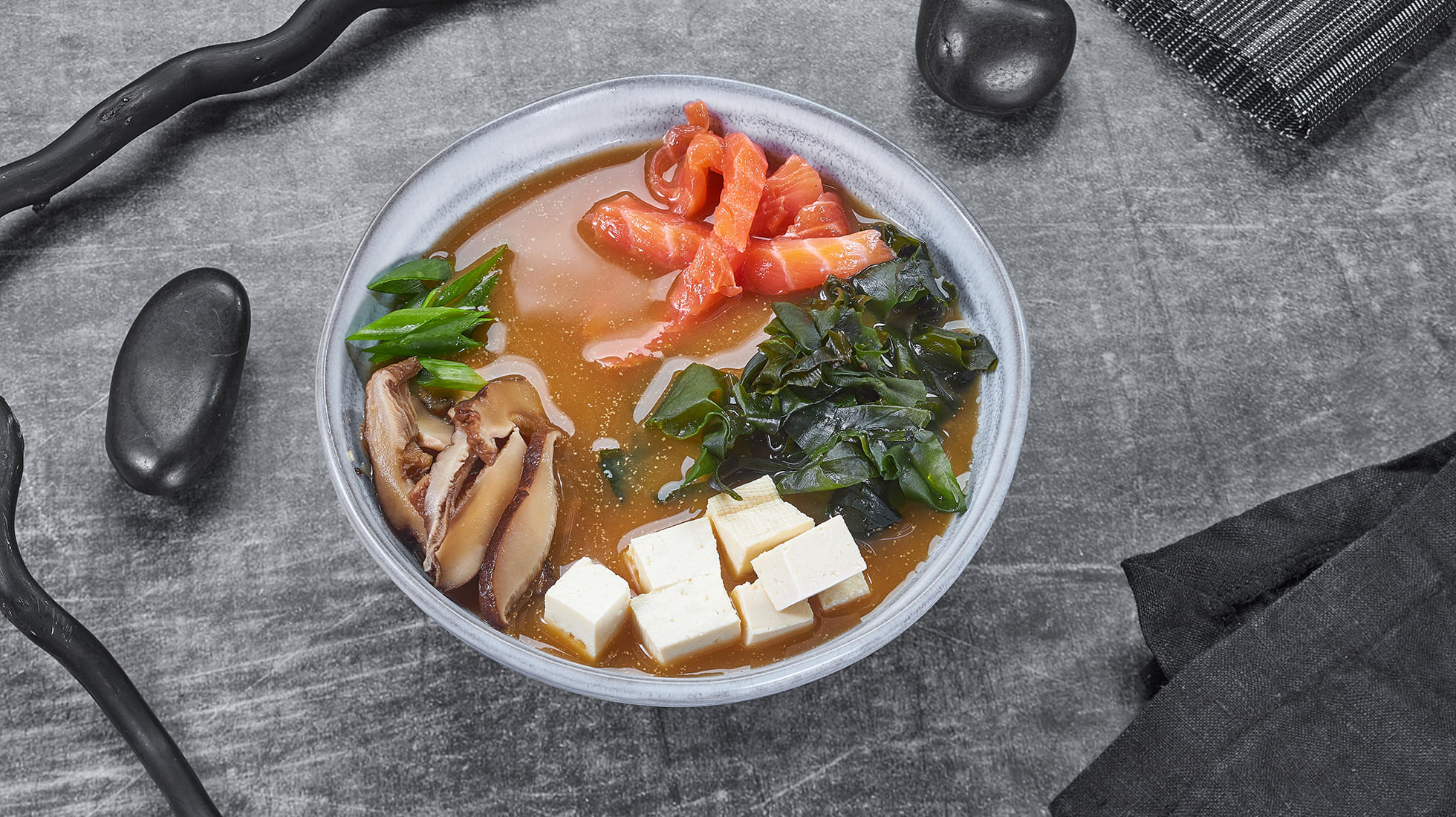 Состав: Лосось, тофу, грибы шиитаке, сливки, водоросли вакамэ, зеленый лук, бульон мисо *Внешний вид блюда может отличаться от фото на сайте.