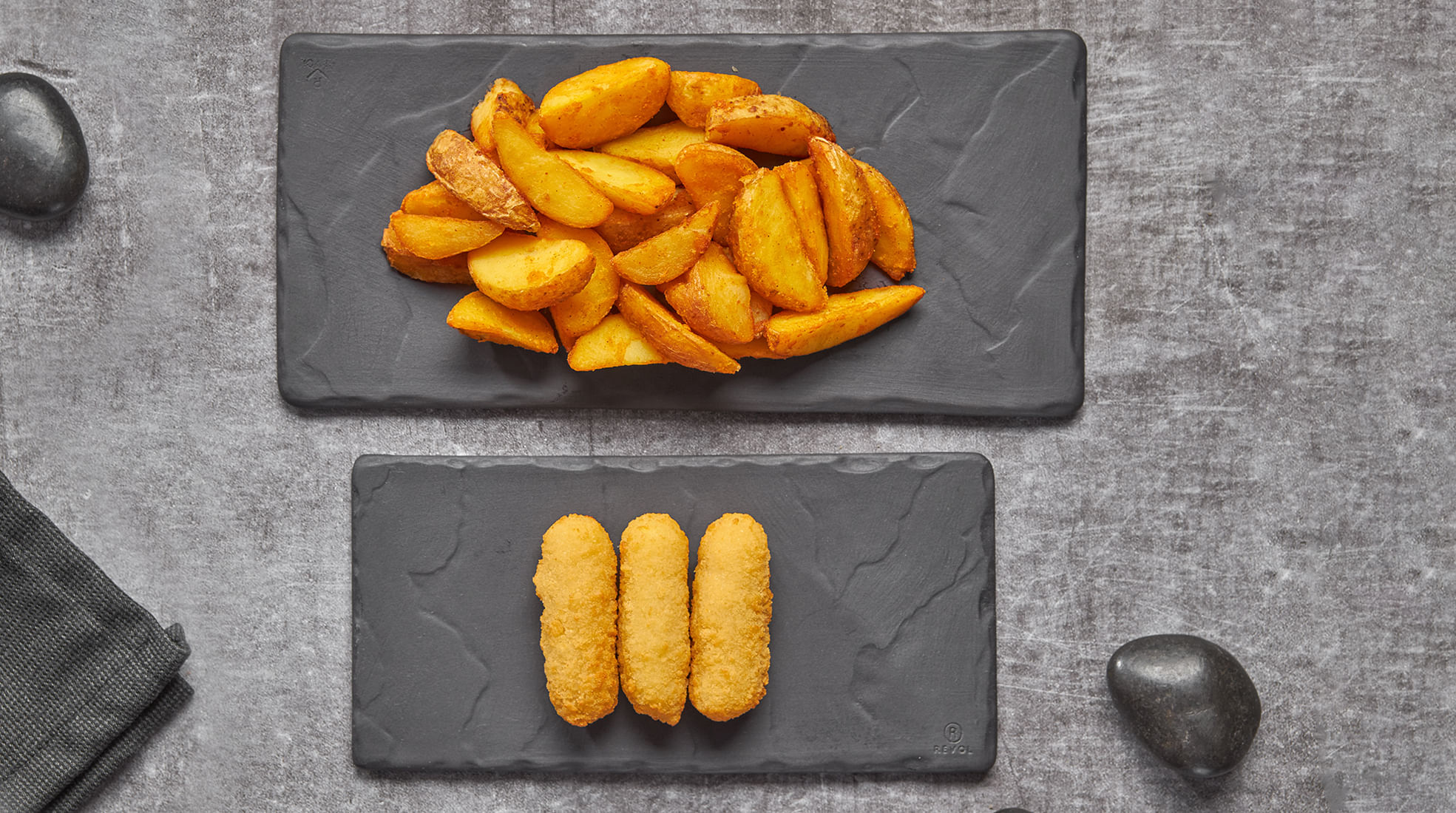 Состав: Картофель Айдахо - 110гр, Сырные палочки - 3шт. Вес: 176гр. *Внешний вид блюда может отличаться от фото на сайте.