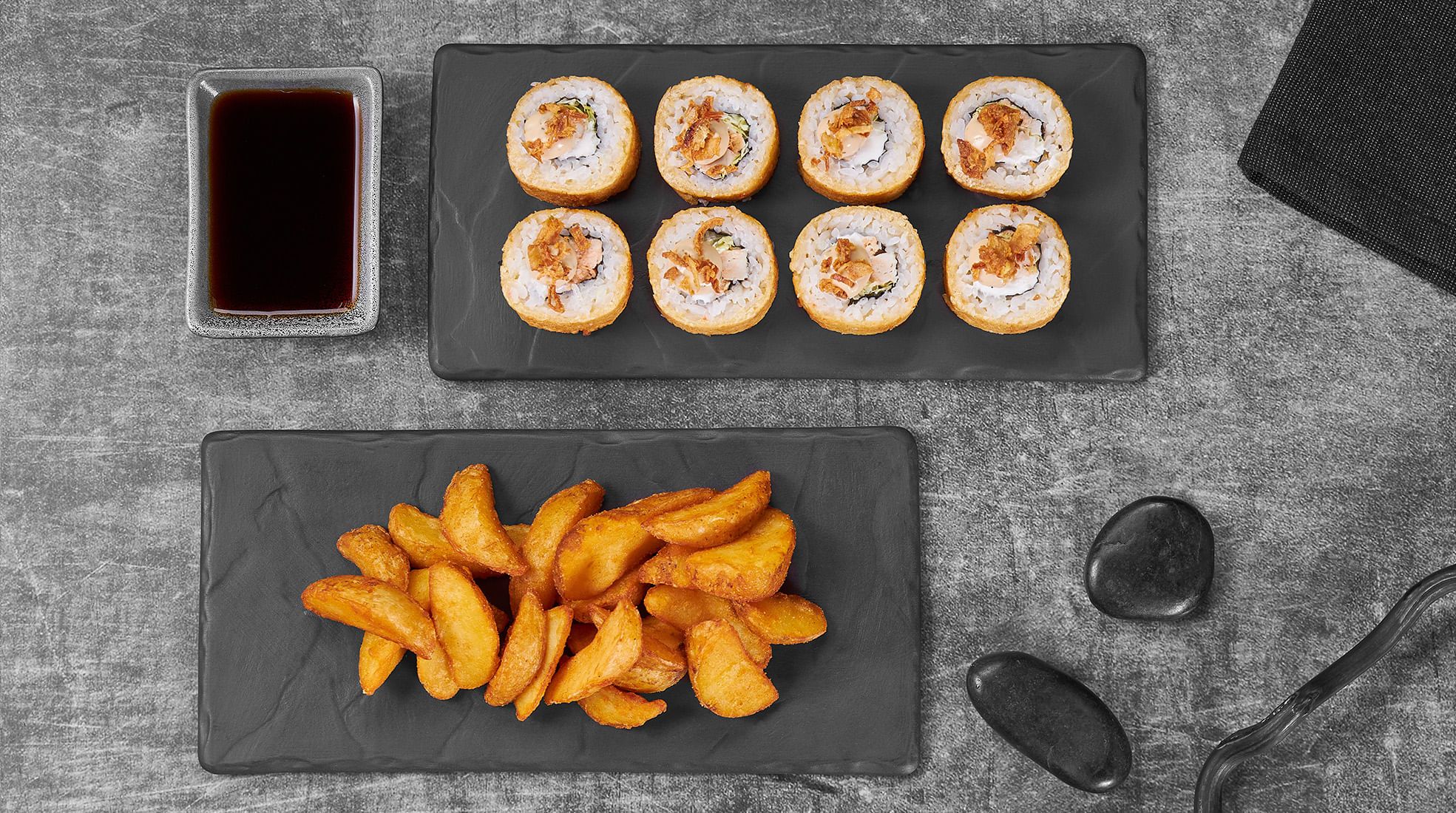 Состав: Картофель Айдахо 110гр, Чикен темпура (8 шт.) *Внешний вид блюда может отличаться от фото на сайте.