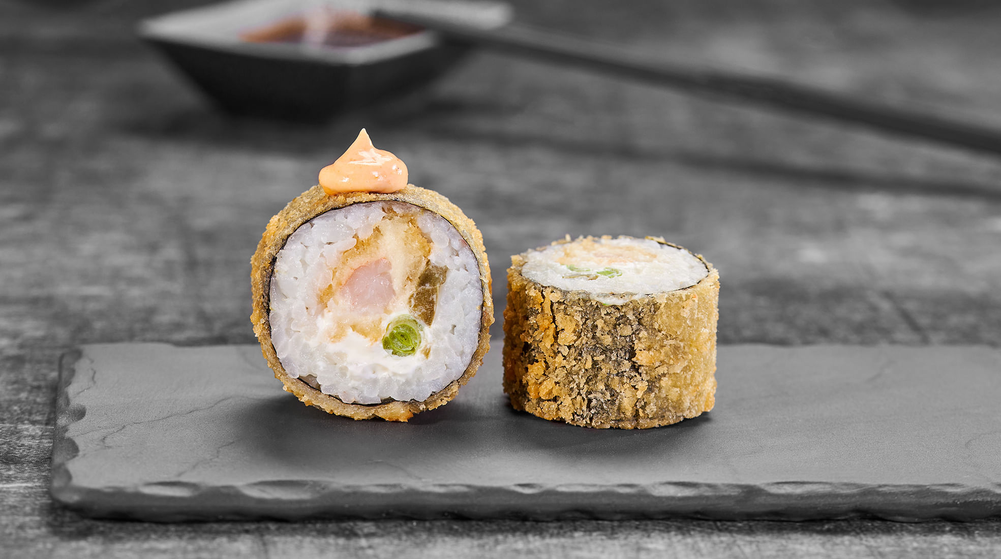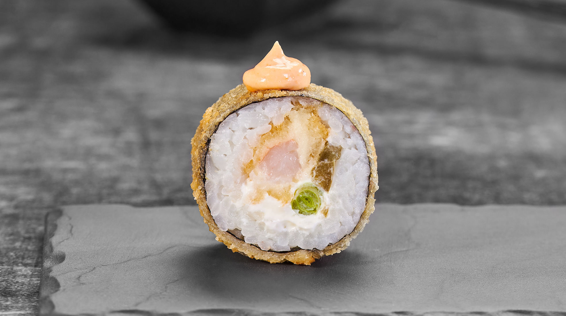 Состав: Креветка в панировке, крем чиз, перец халапеньо, зеленый лук, спайси соус, темпурный кляр, панировочные сухари, рис, нори *Внешний вид блюда может отличаться от фото на сайте.
