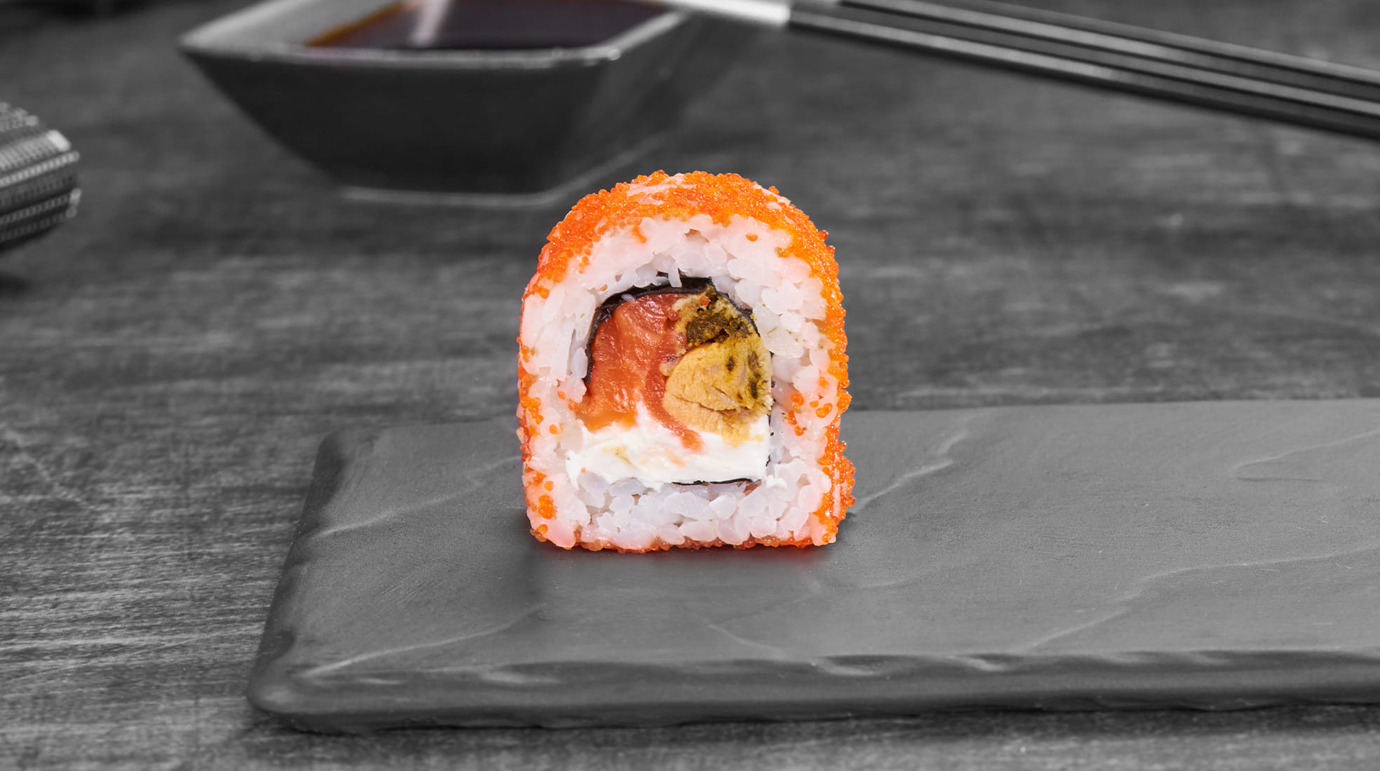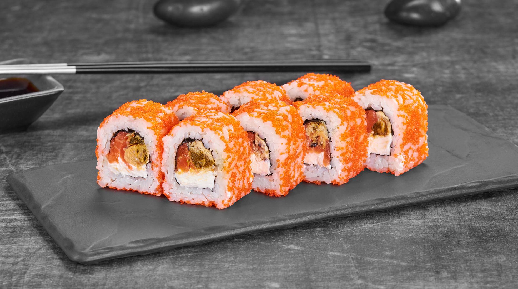 Состав: Копченая кета, крем чиз, мидии, оранжевая икра масаго, нори, рис *Внешний вид блюда может отличаться от фото на сайте.