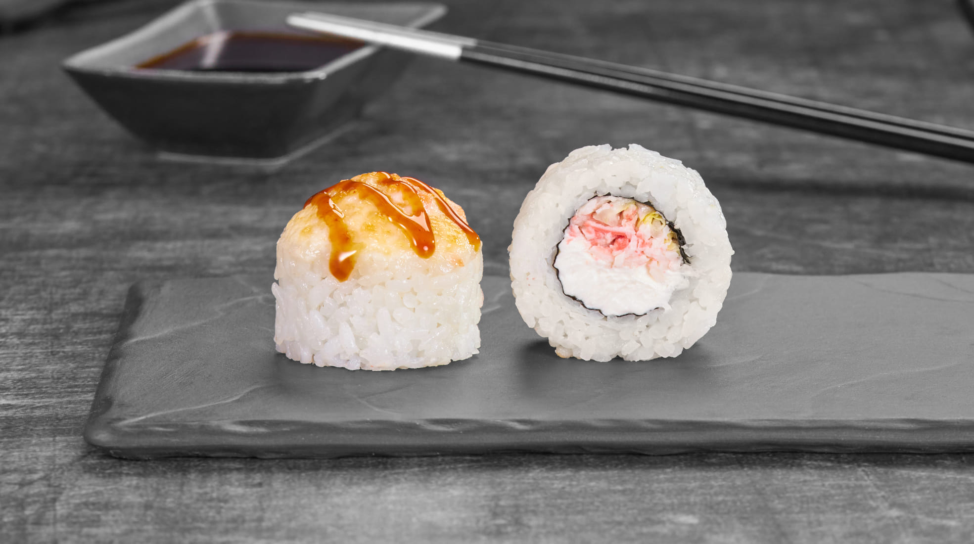 Копченая кета, краб-микс, капуста и теплые соусы собрались, чтобы сделать ролл «под плед и сериал». Он не кричит – он мягко шепчет: «Закажи меня ещё раз». Уютный интроверт среди роллов :)