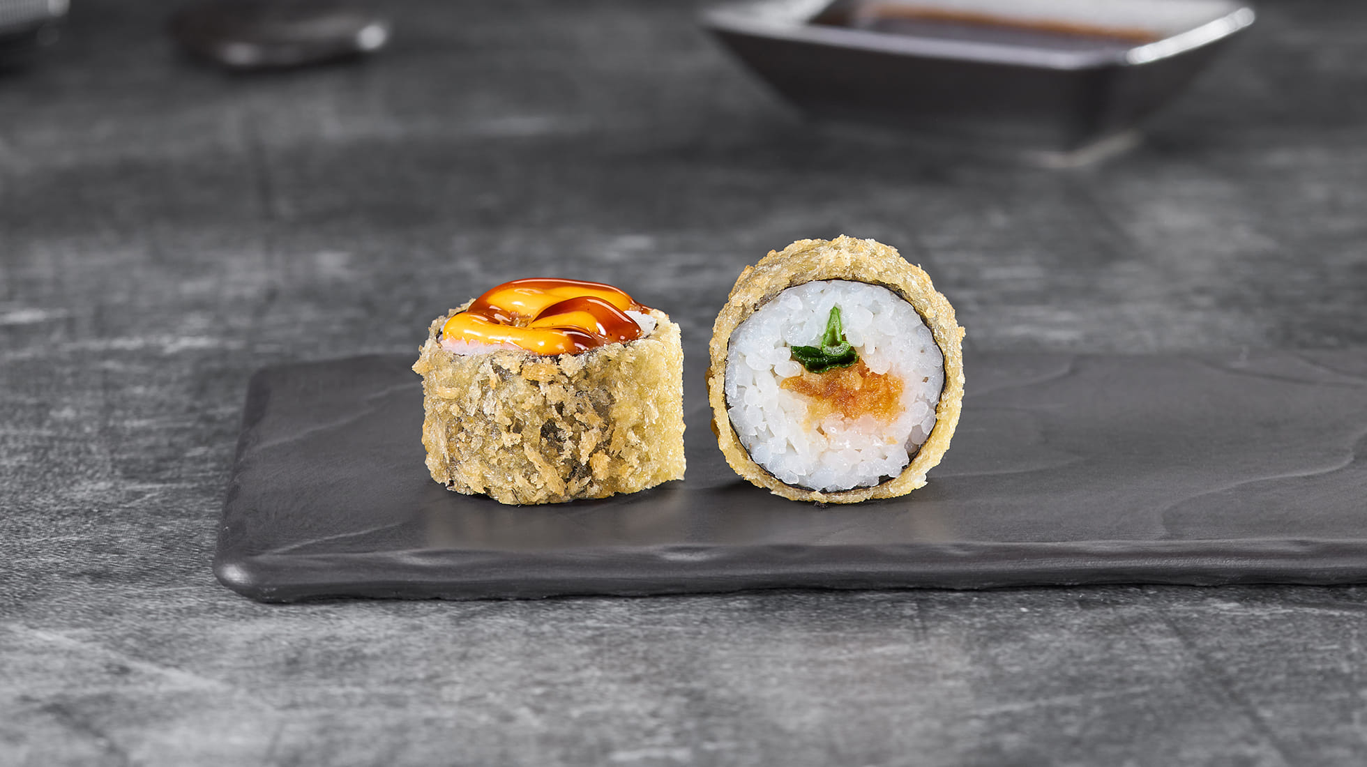 Состав: Лосось терияки, лук зеленый, кляр темпурный, сухари панировачные, соус спайси, соус унаги, рис, нори. *Внешний вид блюда может отличаться от фото на сайте.