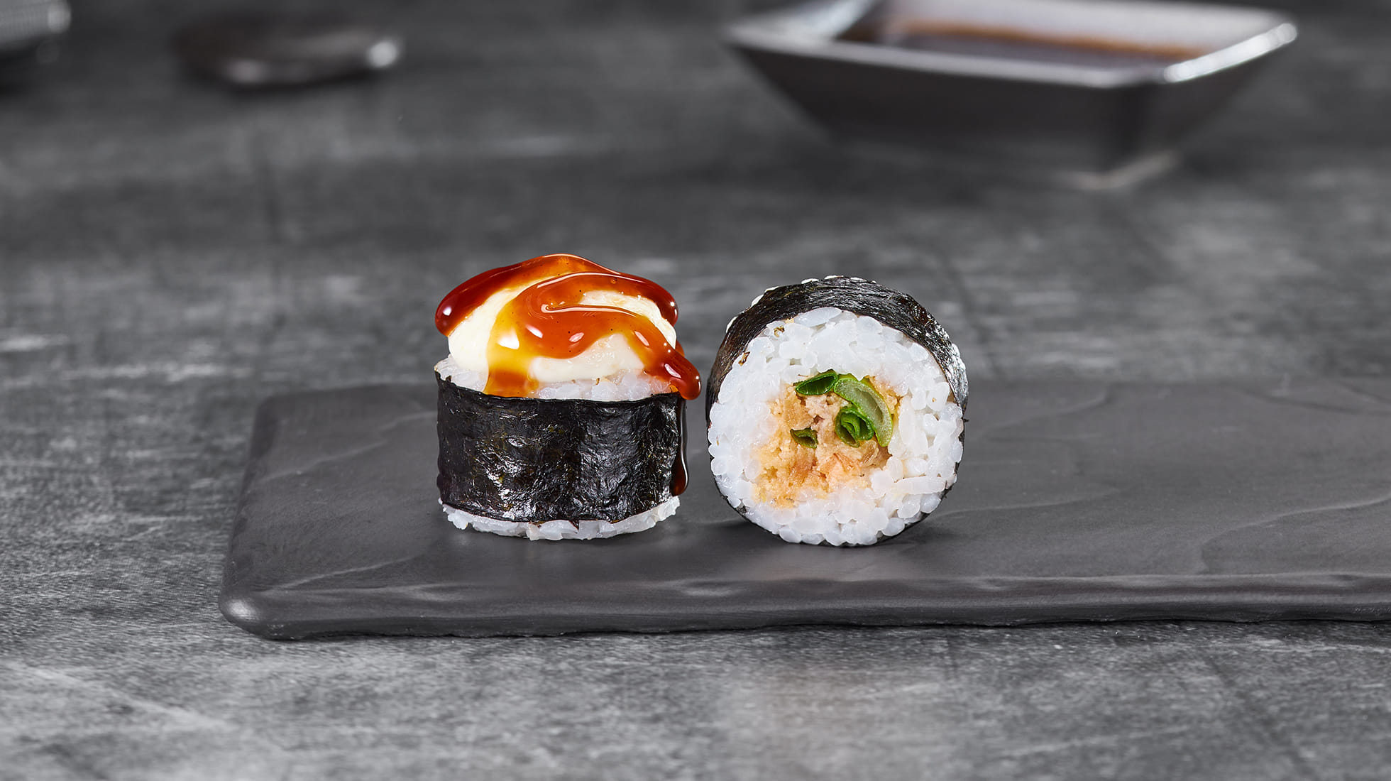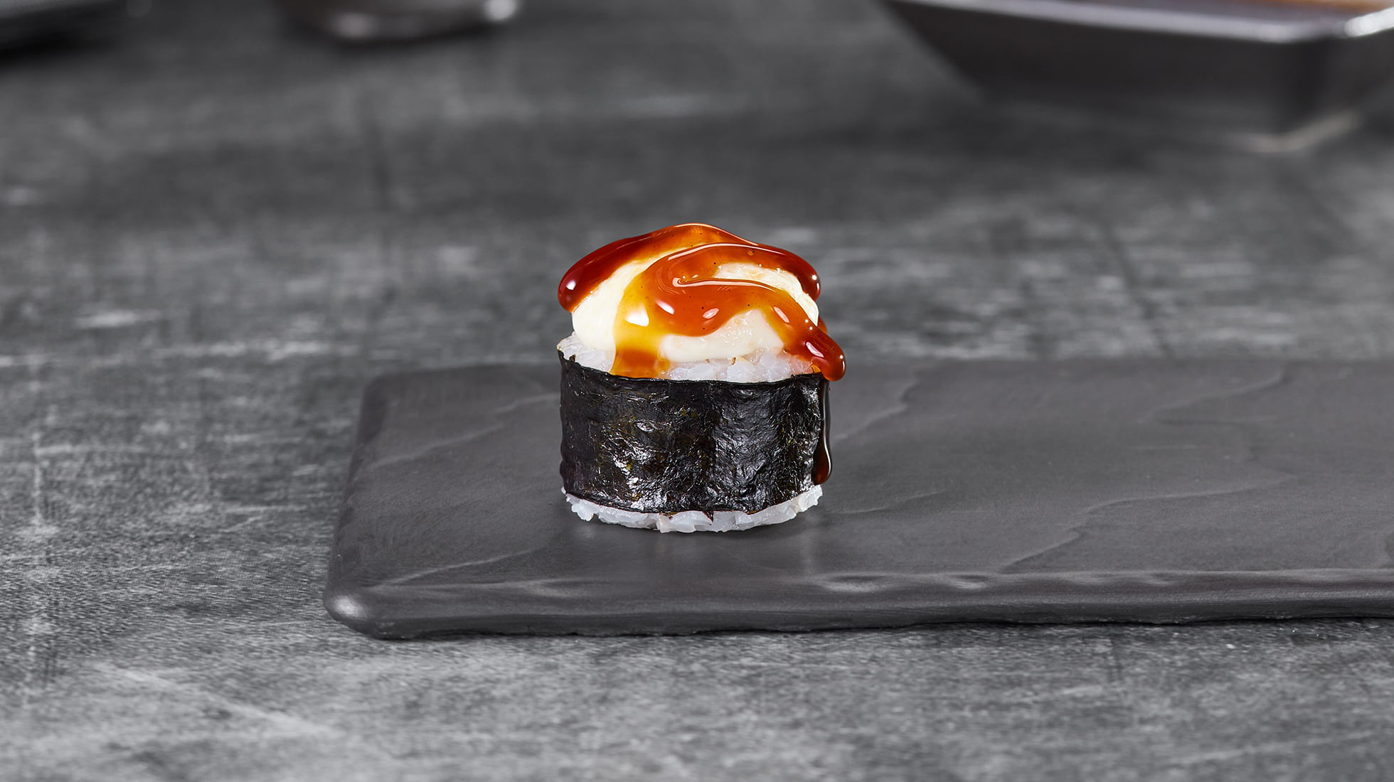 Мини-формат, максимальный характер. Лосось терияки нырнул с головой в монако, унаги все подсластил, а зеленый лук добавил дерзости. Маленький, но такой, что: «Ого, ты откуда такой?» ;)